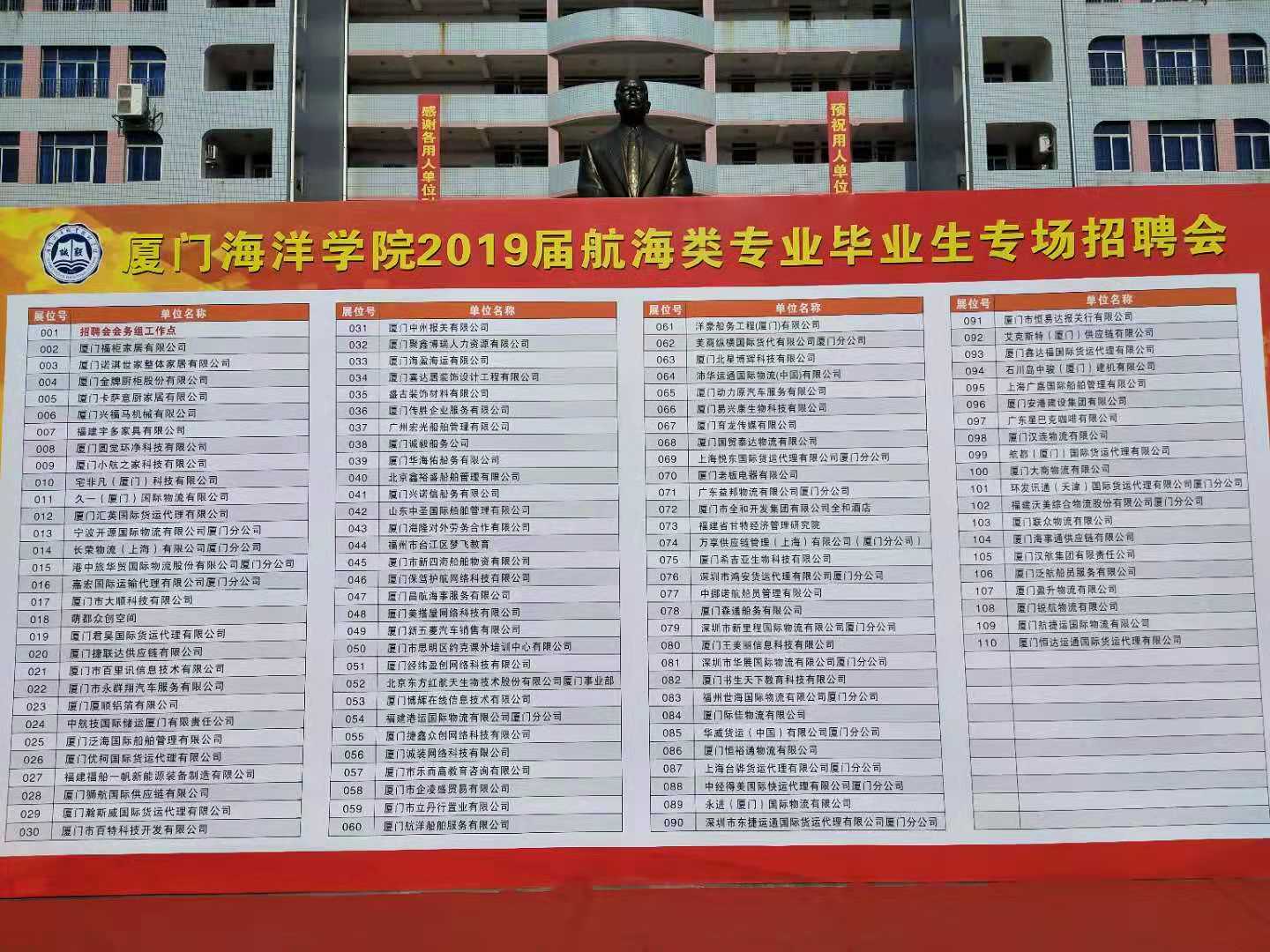 2018年11月21日 厦门海盈海运有限公司行政人事部代表公司前往厦门海洋学院参加2019届航海类专业毕业生专场招聘会。